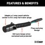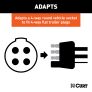 There are several different types of connectors used to supply power from a tow vehicle's electrical system to a trailer's wiring system. Some trailers only need the bare essentials -- running lights, brake lights and turn signals -- while others require a connection for reverse lights, electric brakes and auxiliary power. With connectors ranging from simple to complex, it may be the case that the connection between your vehicle and your trailer is not a perfect match. For example, your truck may be equipped with a 6-way round socket, but your trailer may have a 4-way flat plug. For this very common problem, CURT offers a quick and simple solution in the form of an electrical adapter. An adapter is an electrical device that allows a connection to be made between a mismatched trailer plug and vehicle socket. It easily plugs in your vehicle's electrical socket and usually requires no additional wiring. CURT offers an array of adapters to accommodate most types of plugs and sockets, including 4-way flat, 4-way round, 5-way flat, 6-way round, 7-way RV blades and more. This electrical adapter is designed to adapt a 4-way round vehicle socket to fit a 4-way flat trailer plug. It features quality plastic construction and requires no splicing. All CURT wiring and electrical products come with a one-year limited warranty to give you the assurance you need to tow with confidence.