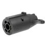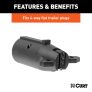 There are several different types of connectors used to supply power from a tow vehicle's electrical system to a trailer's wiring system. Some trailers only need the bare essentials -- running lights, brake lights and turn signals -- while others require a connection for reverse lights, electric brakes and auxiliary power. With connectors ranging from simple to complex, it may be the case that the connection between your vehicle and your trailer is not a perfect match. For example, your truck may be equipped with a 6-way round socket, but your trailer may have a 4-way flat plug. For this very common problem, CURT offers a quick and simple solution in the form of an electrical adapter. An adapter is an electrical device that allows a connection to be made between a mismatched trailer plug and vehicle socket. It easily plugs in your vehicle's electrical socket and usually requires no additional wiring. CURT offers an array of adapters to accommodate most types of plugs and sockets, including 4-way flat, 4-way round, 5-way flat, 6-way round, 7-way RV blades and more. This electrical adapter is designed to adapt a 7-way RV blade vehicle socket to fit a 4-way flat trailer plug. It features quality plastic construction and requires no splicing. All CURT wiring and electrical products come with a one-year limited warranty to give you the assurance you need to tow with confidence.