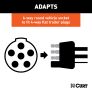 There are several different types of connectors used to supply power from a tow vehicle's electrical system to a trailer's wiring system. Some trailers only need the bare essentials -- running lights, brake lights and turn signals -- while others require a connection for reverse lights, electric brakes and auxiliary power. With connectors ranging from simple to complex, it may be the case that the connection between your vehicle and your trailer is not a perfect match. For example, your truck may be equipped with a 6-way round socket, but your trailer may have a 4-way flat plug. For this very common problem, CURT offers a quick and simple solution in the form of an electrical adapter. An adapter is an electrical device that allows a connection to be made between a mismatched trailer plug and vehicle socket. It easily plugs in your vehicle's electrical socket and usually requires no additional wiring. CURT offers an array of adapters to accommodate most types of plugs and sockets, including 4-way flat, 4-way round, 5-way flat, 6-way round, 7-way RV blades and more. This electrical adapter is designed to adapt a 6-way round vehicle socket to fit a 4-way flat trailer plug. It features quality plastic construction and requires no splicing. All CURT wiring and electrical products come with a one-year limited warranty to give you the assurance you need to tow with confidence.