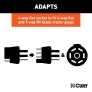 There are several different types of connectors used to supply power from a tow vehicle's electrical system to a trailer's wiring system. Some trailers only need the bare essentials -- running lights, brake lights and turn signals -- while others require a connection for reverse lights, electric brakes and auxiliary power. With connectors ranging from simple to complex, it may be the case that the connection between your vehicle and your trailer is not a perfect match. For example, your truck may be equipped with a 6-way round socket, but your trailer may have a 4-way flat plug. For this very common problem, CURT offers a quick and simple solution in the form of an electrical adapter. An adapter is an electrical device that allows a connection to be made between a mismatched trailer plug and vehicle socket. It easily plugs in your vehicle's electrical socket and usually requires no additional wiring. CURT offers an array of adapters to accommodate most types of plugs and sockets, including 4-way flat, 4-way round, 5-way flat, 6-way round, 7-way RV blades and more. This special dual-output electrical adapter is actually designed to adapt a 4-way flat vehicle socket to fit multiple trailer plugs, including a 4-way flat and a 7-way RV blade connector. Some manual wiring is required. This multipurpose socket also comes with an integrated electrical tester, dust covers, a mounting bracket and all necessary mounting hardware for a complete installation. All CURT wiring and electrical products come with a one-year limited warranty to give you the assurance you need to tow with confidence.