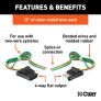Like trailer hitches and ball mounts, electrical connectors range all over the board in shape, size and capability, but no matter what your trailer's electrical functions are, you need a solid connection to keep the power flowing and ensure safety on the road. CURT electrical connectors are designed and manufactured to give you a reliable connection every time you plug in your trailer. These 4-way flat connectors are designed to supply power for tail lights, turn signals and brake lights, as well as a ground connection. They feature durable rubber-molded construction and are each made with 12" of standard color-coded, bonded wire to easily splice into your vehicle's wiring system. This package includes both a vehicle-end and trailer-end connector and is compatible with all 2-wire vehicle systems.