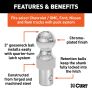 - 3" gooseneck ball installs easily with quarter-turn latch system