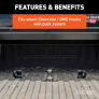 Outfitting your pickup to tow gooseneck trailers is easy with the CURT OEM puck system gooseneck ball and safety chain anchor kit. The components of this 38K kit easily drop into the truck bed pucks, instantly equipping the truck for gooseneck towing. The kit includes a gooseneck ball, safety chain anchors, a rubber hole cover and a durable storage case. It is designed specifically for the Chevrolet, Ford, GMC or Nissan Titan XD puck system and cannot be installed without it. It is rated for 38,000 lbs. GTW and 9,500 lbs. vertical load. The OEM puck system gooseneck ball perfectly fits into the center ball hole and provides a 2-5/16" ball to fit most standard gooseneck trailers. It features with a patented installation system, operating with a simple quarter-turn latch lock for ease of use and a secure mount. Retention balls, built into the shank, keep the gooseneck ball fixed into the receiver hole and keep your trailer locked on tight. Also included in the kit are CURT OEM puck system gooseneck safety chain anchors. Like the gooseneck ball, these patented anchors are made specifically for Chevrolet, Ford, GMC or Nissan Titan XD pickup trucks with the puck system and provide a reliable connection for your gooseneck trailer. They feature a simple drop-in installation system with no tools required, and they offer large safety chain loops to accept heavy-duty clevis hooks. These safety chain anchors are constructed from heavy-duty, cast steel and have a highly durable powder coat finish. Finally, this gooseneck puck system kit includes a tough rubber hole cover to keep water, dirt, grime and rust out of the gooseneck ball hole. The cover installs with a friction fit and helps extend the life of your gooseneck hitch. We also include a durable plastic storage case with each kit to keep the components protected and together for easy storage. The case can be stored inside your truck or truck bed tool box to keep the ball and anchors on-hand whenever you need them.
