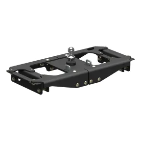 Ingenious design and reliability -- these words don't just describe the Ford Super Duty; they were the inspiration for the CURT OEM-style gooseneck hitch for Ford. This hitch is built to excel in two key things: ease of installation that comes from an ingenious design and safe, reliable towing even with heavy-duty gooseneck trailers. The Ford-compatible gooseneck hitch boasts a one-person installation. It is built with fewer pieces than competitor hitches to keep installation simple, and the pieces are designed to be compact so they can be lifted and bolted into place without the help of a second person. We've also eliminated a number of steps from the process to speed up installation time and reduce the number of modifications needed on the vehicle. The hitch does not require the exhaust or spare tire to be lowered. It requires no welding, temporary truck bed removal or even bed flange trimming. Best of all, pre-existing factory holes are used to mount the hitch to the truck's frame, meaning the only drilling necessary is for the gooseneck ball hole and safety chains in the truck bed. Once installed, the OEM-style gooseneck hitch for Ford offers simple operation and highly secure towing. It is tested in accordance with SAE J2638 to safely tow up to 38,000 lbs. GTW. Instead of a side handle mounted under the wheel well, it uses a latch-locking trailer ball. This patented 2-5/16" ball easily drops into the gooseneck head from above the truck bed and is secured in place with a simple quarter-turn of the latch. This Ford Super Duty gooseneck hitch also features heavy-duty 5/8" safety chain anchors for dependable security for your trailer, whether you're towing livestock, machinery or construction materials. To ensure maximum quality, the CURT OEM-style gooseneck hitch for Ford comes with a tough A-coat finish to easily resist rust and scratches.