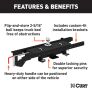 - Heavy-duty handle can be positioned on either side of the vehicle