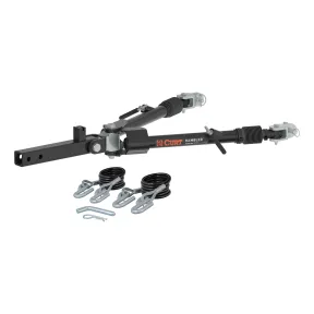 The CURT Rambler steel tow bar is ergonomic, easy to use and highly tested for reliable flat towing. It uses a patent-pending latch design that allows the arms to be disconnected from the dinghy vehicle on various grades and angles. The latches are non-binding for a quick release without hassle, especially offroad. When hooking up your vehicle, the locks automatically engage, making the connection quick and hands-free. The Rambler heavy duty tow bar weighs less than 40 pounds, making it ergonomic and easy to handle compared to other steel towbar options. It also stores quickly and conveniently, featuring pivoting arms that can be moved to either side or apart. This helps avoid obstructions, such as a rear spare tire. The CURT Rambler is rigorously tested for absolute confidence in your towing setup. It has a solid steel construction and 7,500-pound rating. Rambler is perfect for towing a variety of automotive vehicles behind motorhomes, including cars, trucks, SUVs and Jeeps. This RV tow bar kit is compatible with standard 2-inch receiver hitches, and it can be coupled to CURT or Blue Ox base plate brackets (sold separately). For long-lasting weather resistance, the Rambler flat tow bar hitch has protective rubber sleeves and a durable textured black powder coat finish.