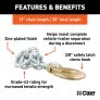 No matter how far you are planning to drive -- down the street or across the state -- using safety chains when you tow is smart, safe and required by law. Without safety chains attached, there is a serious risk of danger if your trailer becomes uncoupled from your trailer hitch. Play it safe with safety chains, and play it even safer with safety chains from CURT. CURT has a few different options when it comes to securing your trailer. This heavy-duty safety chain is made from high-quality steel and is grade-43 certified. It is equipped with a single, sturdy safety latch clevis hook for reliable coupling to your vehicle, even over rough terrain, and features a minimum break force of 16,200 lbs. Remember, each safety chain assembly connecting your trailer to your vehicle must meet or exceed the gross trailer weight. This CURT safety chain measures a total length of 31" and has chain links with a 3/8" diameter. In our book, making safety a priority when you tow is a must. We offer all the safety equipment needed for successful towing, from our electrical components to our safety chains. The next time you hitch up for an adventure, always Bring It safely with CURT.