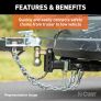 There are always some factors on the road you cannot control -- an irresponsible driver, adverse weather conditions -- but one thing you can control is the type of towing equipment you use. Just because there are threats out there, doesn't mean your towing adventures need to be dangerous. CURT offers a variety of towing safety products -- including safety chains, safety cables, hooks, links and more -- to make sure you have confidence to Bring It and trustworthy equipment to Bring It safely. CURT snap hooks are a highly secure way to connect your safety chains from your trailer to your tow vehicle. They feature a spring-loaded safety latch that turns the hook into a closed loop. Similar to a quick link, the safety latch allows for a safety chain connection that won't come loose from vehicle vibrations or jarring on uneven terrain. Snap hooks also feature a strong steel construction and come with a zinc-plated finish to outlast the elements. This particular snap hook has a 3/8" diameter and offers a gross trailer weight capacity of 2,000 lbs. Remember, when attaching safety chains, the chains should be cross underneath the trailer coupler, and each hook and chain must be rated to meet or exceed the gross weight of the trailer.