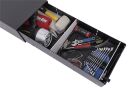 Dee Zee Under Seat Storage Drawer - Add secure storage under the rear seat of your pickup. With acces at either end allows access to the entire drawer and three plastic dividers to help organize large and small items. Heavy duty steel construction with our NRT(TM) (No Rust Technology) rust inhibitor powder coat finish.