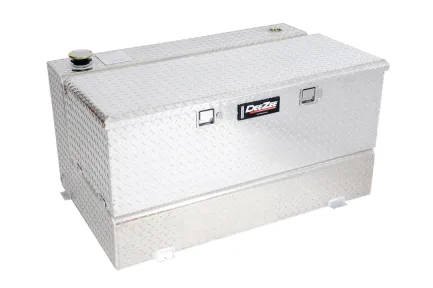 Dee Zee Combo Tanks - The convenience of a utility chest connected to a liquid transfer tank. Constructed of heavy gauge Brite-Tread aluminum. Radius curve design eliminates key weld pressure points. Tanks feature stability baffles, lockable cap, 3/8 in. drainage plug, and venting coupler. Tool box offers lockable storage with high quality stainless steel paddle handles and features gas shocks, hidden hinge, Alumaguard strengthening channel, closed cell foam gasket, and self-adjusting strikers. Tanks are intended for private use (non-commercial). Not designed for use as an auxiliary fuel system. Not for use with gasoline. Does not meet title 49 of the United Stated Federal Registry governing transportation.