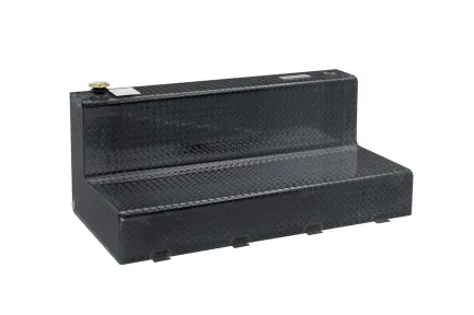 Dee Zee Transfer Tanks - A safe and convenient means for transporting non-flammable liquids. Constructed of Brite-Tread aluminum. Black powder coat finish. Radius curve design eliminates key weld pressure points. Feature 3 stability baffles, lockable cap, 3/8 in. drainage plug, and venting coupler. Intended for private use (non-commercial). Not designed for use as an auxiliary fuel system. Not for use with gasoline. Does not meet title 49 of the United Stated Federal Registry governing transportation.