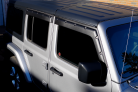 Tough FormFit Visors (Tough Visors for short) are the newest product development from Focus Auto Design Inc. This patent pending design clearly draws its inspiration from the appearance of aggressively styled "bolt on" look fender flares. Available in a textured finish, this ruggedly styled hood protector is an excellent match to any black components on your vehicle. It has been designed with materials selected to complement the existing features of your truck or Jeep. Tough Guards are made from high impact ABS co-extruded with an acrylic top layer for a superior appearance and finish. ABS is the durable material used in pickup box liners and running boards. The OEM Quality No Drill Installation utilizes 3M Automotive tape, patented mounting pedestals and stainless steel fasteners.
