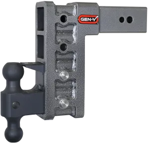 GEN-Y's Mega-Duty Adjustable Drop Hitches start at 10,000 LB towing capacity and go up to 32,000 LB towing capacity. There are multiple drop options as well depending on your trailer towing needs.