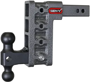 GEN-Y's Mega-Duty Adjustable Drop Hitches start at 10,000 LB towing capacity and go up to 32,000 LB towing capacity. There are multiple drop options as well depending on your trailer towing needs.