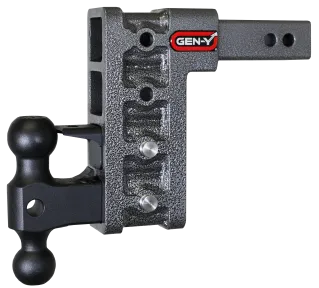 GEN-Y's Mega-Duty Adjustable Drop Hitches start at 10,000 LB towing capacity and go up to 32,000 LB towing capacity. There are multiple drop options as well depending on your trailer towing needs.