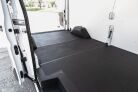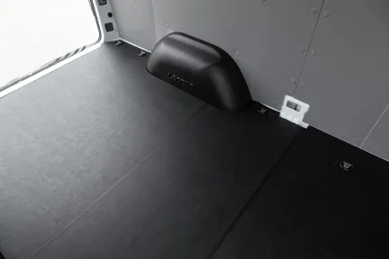 Legend’s newest product StabiliGrip is gaining a truly legendary name in the industry as the only dimensionally-stable composite floor available for cargo vehicles. StabiliGrip flooring has a black “sandpaper” textured rubberized surface for maximum grip. The rubberized top also helps to absorb impact and make the flooring more puncture resistant. The center core of StabiliGrip is a dimensional stable composite LDPE (low-density polyethylene) that mitigates reaction to extreme temperatures. The center core is sandwiched by two layers of fiber mesh to increase stability and rigidity. On the bottom there is another rubberized cushioning layer to reduce road noise and rattling. StabiliGrip is .5 inches thick and all floors are available only from the 60 x 72? layout.