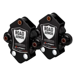 With the Road Armor system integrated into your trailer, comfortless rides are one less thing for you to worry about while you travel. With its anti-shock technology, road shock and vibrations transferred from both the leading and trailing leaf springs are dampened, resulting in less chucking and a smoother ride. Engineered to obtain maximum absorption, Road Armor is designed to offer RVers and trailer owners a superior suspension enhancement solution that can be added as an easy aftermarket upgrade and is also offered as a great substitution for torsion axles. The patent-pending design incorporates a single pivoting arm that is permanently engaged with the trailer axle leaf springs. This allows Road Armor to constantly absorb and dampen road shock whether it is coming from the leading or trailing spring, utilizing the trailer’s natural motion. Once road shock and vibrations are encountered, they are transferred to one of two customized durometer rubber shock absorbers. Competing products use rubber compounds with the consistency of a hockey puck, which does little to absorb anything and transfers this shock directly into the RV chassis and concurrently into the sidewall. How is 360 degrees of protection attainable? Simple, each side of the Road Armor Equalizer has 3 inches of total vertical travel capability. When the lead leaf spring encounters road shock, it will kick the Road Armor’s lead side vertically up to one and a half inches, while the trailing side will push down up to one and a half inches. The adverse reaction happens on the opposite side of the Road Armor Equalizer when the trailing axle incurs the same road vibration. That’s 360-degrees and 6 total inches of unparalleled protection!