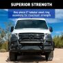 The LUVERNE SolidShield van grille guard is exactly what it sounds like: a truly solid grille guard that shields, preserves and protects your fleet day after day, mile after mile. SolidShield is the grille guard made for cargo van fleets, combining state-of-the-art technology with a stylish look to deliver quality protection and sophistication all in one. SolidShield is a step above the rest with its 4-point frame mounting system, which adds extra strength, durability and fleet uptime compared to the more common 2-point mounting system. To make upgrading extremely convenient, it has light brackets available for mounting aftermarket lights (sold separately). It features a one-piece 2" tubular steel ring assembly for reliable strength and rubber extrusions that are formed over metal strips on the uprights. Its vehicle-specific construction contours to the front of the van, giving your fleet a unique appearance that stands out and makes a strong statement. This particular model fits select years of the Mercedes-Benz Sprinter 2500 and 3500 (see application info to verify fitment). In addition to its unrivaled strength and sleek appearance, the SolidShield has an easy installation process using vehicle-specific, high-strength steel mounting brackets. Finished with an E-coat / semi-gloss black powder coating for dependable protection, SolidShield is the tough grille guard that combines strength, durability and style without sacrificing function.