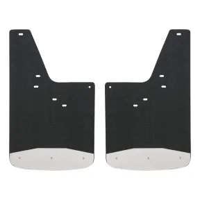 Whether you're on the job or off-roading through the wilderness, it doesn't take long for rocks and other debris to wreak havoc on the body of your truck. LUVERNE Textured Rubber Mud Guards are the perfect solution for maintaining that pristine, professional look. For the front or rear of the truck, these custom mud flaps add style and body protection. They are constructed from heavy-duty black rubber that stands up to road debris and sheds water with ease. They feature 18-gauge stainless steel plates to help protect the bottom edge and extend the life of the mud flaps. With their 3/8" thick, recycled rubber construction, Textured Rubber Mud Guards easily deflect everything from mud to gravel, protecting the body of your truck from scratches, chips and scuffs. They are also made to add a stylish accent to your truck, featuring stainless steel plates along the bottom edge of each flap. The plates are made from 18-gauge stainless steel to provide a heavy-duty, rust-resistant shield, and they feature a bright, high-polish finish for a long-lasting shine. The textured finish of the rubber mud flaps is also designed to easily hide minor scuffs and scratches and maintain a clean appearance. For an easy installation and a custom fit, these truck mud flaps are made vehicle-specific. This particular set fits specific years of the Chevy Silverado 1500, 2500 HD or 3500 HD and GMC Sierra 1500, 2500 HD or 3500 HD (see application info to verify fitment). They install with corrosion-resistant fasteners and high-strength steel mounting brackets with a galvanized finish for long-lasting durability. Universal mud flaps are also available.