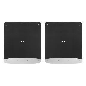 Whether you're on the job or off-roading through the wilderness, it doesn't take long for rocks and other debris to wreak havoc on the body of your truck. LUVERNE Textured Rubber Mud Guards are the perfect solution for maintaining that pristine, professional look. For the front or rear of the truck, these custom mud flaps add style and body protection. They are constructed from heavy-duty black rubber that stands up to road debris and sheds water with ease. They feature 18-gauge stainless steel plates to help protect the bottom edge and extend the life of the mud flaps. With their 3/8" thick, recycled rubber construction, Textured Rubber Mud Guards easily deflect everything from mud to gravel, protecting the body of your truck from scratches, chips and scuffs. They are also made to add a stylish accent to your truck, featuring stainless steel plates along the bottom edge of each flap. The plates are made from 18-gauge stainless steel to provide a heavy-duty, rust-resistant shield, and they feature a bright, high-polish finish for a long-lasting shine. The textured finish of the rubber mud flaps is also designed to easily hide minor scuffs and scratches and maintain a clean appearance. For an easy installation and a custom fit, these truck mud flaps are made vehicle-specific. This particular set fits specific years of the Chevy Silverado 3500 HD and GMC Sierra 3500 HD (see application info to verify fitment). They install with corrosion-resistant fasteners and high-strength steel mounting brackets with a galvanized finish for long-lasting durability. Universal mud flaps are also available.
