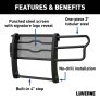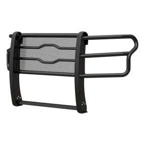 Basic. Standard. Stock. Some words were never intended to describe your truck, and it takes a certain type of hardworking truck accessory to meet your expectations. The LUVERNE Prowler Max grille guard equips your truck to tackle the toughest jobs with its uncommon construction, comprehensive protection and arsenal of extra features. It begins with a bold, punched steel screen center section. This heavy-gauge mesh not only adds style to the Prowler Max but also increases protection for your grille, shielding it from rocks, debris and other threats. The center section features our signature logo reveal with contoured horizontal tubes to add even more protection and increase structural stability. Below the center section is a built-in 4" wide step with non-skid, diamond treads. The step blends perfectly with the grille guard and provides easier access when working under the hood, particularly on large, full-size pickup trucks. The Prowler Max aftermarket grille guard also distinguishes itself with its vehicle-specific wraparound ring assembly. The double-stacked side brush guards uniquely contour to the front end of each truck application for increased headlight protection. This particular custom truck grille guard fits specific years of the Chevrolet Silverado 2500 HD and 3500 HD (see application info to verify fitment). To give it the muscle to stand behind its attitude, we construct the Prowler Max from one-piece, 2" diameter tubular steel. Its heavy-duty uprights bolt directly to the frame of the truck, using high-strength steel brackets and a no-drill installation. To finish things off, the Prowler Max truck grille guard is available in two finish options. The E-coat and black powder coat finish offers maximum durability, while the high-polish stainless steel provides a bright, no-rust shine.