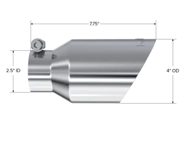 The exhaust tip is the crowning touch to your performance exhaust. It is your opportunity to really show off your personal style. That's why MBRP offers such a wide assortment of high quality, bolt on tips, because everybody has their own idea of style. MBRP offers T304 polished stainless, Black coated, Burnt End and Carbon Fiber tip options in various sizes. The tips are universal fit so be sure to measure your tail pipes outside diameter and match it to the MBRP tip INLET diameter before ordering.