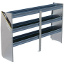 Composite aluminum shelving unit for low roof vans, 16″ x 44.5″ x 72″. Model: N4-RA72-3