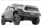 Give the front of your Toyota Tundra an aggressive, new appearance with Rough Country's Front LED Bumper. This easy-to-install upgrade gives your truck an improved look and better protection that offer impressive off-road illumination! Rough Country's Front LED Bumper is made of a durable, all-steel construction. Each bumper features four Rough Country 2in LED Cubes and a 20in LED Light Bar that offer over 15,000 lumens of combined lighting power. Each bumper also includes sensor relocators to allow you to retain the vehicle's anti-collision system. This incredible front bumper system is powder coated flat black and is ready to withstand the elements for a long lifespan of good looks. Rough Country's Front LED Bumper is also easy to install with no cutting or drilling required! Complete the look with Rough Country's Rear LED Bumper for a total transformation of your truck.
