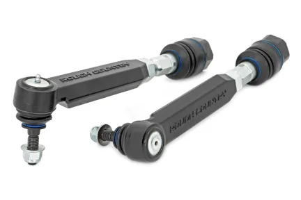 Don't settle for weak tie rods! You want your steering and suspension to be as strong as the truck you love. That's why you need Rough Country's HD Forged Tie Rod Kit. This upgrade is a great replacement for stock parts, especially if you're going off-road or towing a heavy load. Our tie rod ends give you a smoother ride, better turn-in response, and increased safety. Because sometimes stock just isn't strong enough. Strong and Reliable. You never know what kind of terrain you'll encounter or what obstacles may get in your way. That's why you can rely on the rugged durability of our HD Tie Rod Kit to keep you going where you need to go. They are bend-resistant, have 22mm adjustment threads, and replace the inner, and outer tie rod ends. These heavy-duty tie rod end assemblies are made with forged steel and include an adjustable shaft and steel ball-joint housing. With these heavy-duty replacements, you can keep your vehicle on the road and out of the shop. Installation. Rough Country's Tie Rod Kit is a no-cutting, bolt-on installation. Warranty. Rough Country's HD Forged Tie Rod Kit comes with our industry-leading warranty.