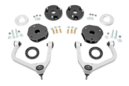 Rough Country's 3.5" Bolt-On Lift Kit delivers aggressive styling, enhanced performance, and an unbeatable value all with an easy installation process. Elevate your ride and conquer new heights with this premium upgrade! Precision-Engineered Upper Control Arms: This kit features high-quality, lightweight, forged aluminum Upper Control Arms designed for effortless alignment adjustments. Equipped with OE-style rubber bushings, these arms provide enhanced durability while maintaining a factory-like geometry. By keeping the ball joint at optimal angles, this design allows for a greater range of motion with less stress, wear, and tear ensuring long-lasting performance on and off the road. Rear Lift & Aggressive Stance: Included in the kit are durable strut spacers that provide lift height in the rear, giving your truck the clearance it needs to accommodate up to 305/55R20 tires. The result? A sleek, level stance from front to rear that enhances both aesthetics and functionality. Hassle-Free, Bolt-On Installation: This all-inclusive kit is designed for easy installation, requiring only minor trimming and basic hand tools no need for complicated modifications! With a 100% bolt-on process, you can install this kit right at home with confidence. Backed by Rough Country's Limited Lifetime Replacement Warranty: Enjoy peace of mind with Rough Country's industry-leading Limited Lifetime Replacement Warranty, ensuring your investment is protected for years to come. Upgrade your ride today with the Rough Country 3.5" Bolt-On Lift Kit where performance, durability, and style come together in one unbeatable package!