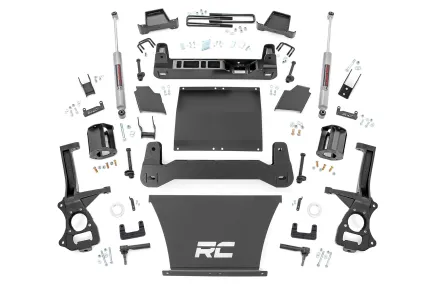 Explore New Heights: Chevy's fourth generation 1500 features an impressive all-new design that's built from the ground up, with aggressive angles and head-turning stylings that fit in beautifully when transformed with Rough Country's 6-inch Suspension Lift. Innovative Design and Construction: When changing a vehicle's suspension, the key to preserving ride quality is keeping the geometry of all suspension components as close to their factory angles as possible. This suspension kit combines the use of durable steel knuckles, differential brackets, and drop cross members to reduce cv angles and simulate factory angles all while achieving new heights. Featuring a set of upper strut spacers that offer uncompromised strength and rigidity, gaining lift height is no issue. Completing the rear of this suspension kit is a set of rear blocks, shocks, and U-bolts that allow you to retain factory-like geometry. This combined setup provides enough clearance to run 35" tires without additional modifications. We didn't want to limit you to one standard kit. Rough Country's 6-inch kit is configurable with all the shock options that we offer. This allows you to choose which shock series you want! Ranging from our nitrogen-charged N3 shocks to our Vertex reservoir shocks the power to choose is in your hands. Installation: With minor cutting and a strut compressor required to install, an estimated timeframe of 8-10 hours is recommended to complete this full installation. This full kit can be installed at home and can be completed efficiently and quickly! Limited Lifetime Replacement Warranty: Rough Country's 6" Suspension Lift Kit is backed with a limited lifetime replacement warranty towards manufacturer defects. As such, the product is protected from structural and workmanship damage after the date of purchase. With our industry-leading warranty give yourself peace of mind when using Rough Country's Suspension products!