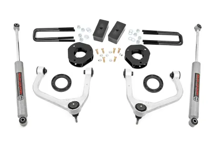 Explore New Heights: GMC's fifth-generation Sierra 1500 features an impressive all-new design that's built from the ground up, with aggressive angles and head-turning stylings that fit in beautifully when transformed with Rough Country's 3.5-inch Suspension Lift. Innovative Design and Construction: When changing a vehicle's suspension, the key to preserving ride quality is keeping the geometry of all suspension components as close to their factory angles as possible. Rough Country's 3.5in lift features a set of forged aluminum upper control arms to provide the correct suspension geometry in our most durable control arm to date! This perfect-height lift is a great choice for anyone who wants more than a simple level but doesn't quite want the full height of a 6-inch option. This kit lifts and levels the front of the vehicle with the rear, offering enough increased ground clearance to run up to 295/55R20 tires with an improved, aggressive look. We didn't want to limit you to one standard kit. Rough Country's 3.5-inch kit is configurable with all the shock options that we offer. This allows you to choose which shock series you want! Ranging from our nitrogen-charged N3 shocks to our Vertex reservoir shocks the power to choose is in your hands. Installation: Requiring the use of a strut compressor to install, an estimated timeframe of 5-6 hours is recommended to complete this full installation. This full kit can be installed at home and can be completed efficiently and quickly! Limited Lifetime Replacement Warranty: Rough Country's 3.5" Suspension Lift Kit is backed with a limited lifetime replacement warranty towards manufacturer defects. As such, the product is protected from structural and workmanship damage after the date of purchase. With our industry-leading warranty give yourself peace of mind when using Rough Country's Suspension products!