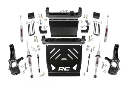 Elevate Your Second Generation Colorado or Canyon: Transform your mid-size truck into a true off-road beast with Rough Country's 6-Inch Lift Kit! Designed for both aggressive styling and top-tier performance, this kit includes everything you need to take your ride to the next level. Heavy-duty front and rear crossmembers keep your suspension secure, while a durable front skid plate with a laser-cut "RC" logo delivers bold styling and superior undercarriage protection. Precision-engineered lifted knuckles maintain OE geometry for smooth handling, and fabricated rear lift blocks provide unmatched strength and longevity compared to cast options. Take on Any Terrain with Confidence: This kit comes equipped with Rough Country's premium N3 shocks - designed for the perfect blend of off-road dominance and smooth highway performance. These 10-stage variable valving, high-pressure Nitrogen-charged shocks provide exceptional vibration dampening, thanks to a robust 18mm spring-loaded piston rod and a fast-cooling 54mm shock body built for durability. With up to 36kN of tensile strength, these shocks ensure long-lasting, reliable performance while featuring natural rubber bushings and a sleek metallic silver finish for a sharp, rugged look. Looking for even more high-performance handling? This kit is also available with Rough Country's M1 Monotube Shocks, offering superior heat dissipation and a consistent, responsive ride in extreme conditions. Built for Easy Installation: This lift kit is minimally invasive - no welding or strut disassembly required - so you can get back on the road or trail faster. The design retains the factory track width and ensures a smooth, factory-like ride for the best of both worlds. Backed by Rough Country's Lifetime Replacement Guarantee, this lift kit is built for performance, durability, and adventure!