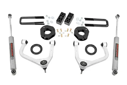 Explore New Heights: GM's fourth-generation Silverado 1500 features an impressive all-new design that's built from the ground up, with aggressive angles and head-turning stylings that fit in beautifully when transformed with Rough Country's 3.5-inch Suspension Lift. Innovative Design and Construction: When changing a vehicle's suspension, the key to preserving ride quality is keeping the geometry of all suspension components as close to their factory angles as possible. Rough Country's 3.5in lift features a set of forged aluminum upper control arms to provide the correct suspension geometry in our most durable control arm to date! This perfect-height lift is a great choice for anyone who wants more than a simple level but doesn't quite want the full height of a 6-inch option. This kit lifts and levels the front of the vehicle with the rear, offering enough increased ground clearance to run up to 295/55R20 tires with an improved, aggressive look. We didn't want to limit you to one standard kit. Rough Country's 3.5-inch kit is configurable with all the shock options that we offer. This allows you to choose which shock series you want! Ranging from our nitrogen-charged N3 shocks to our Vertex reservoir shocks the power to choose is in your hands. Installation: Requiring the use of a strut compressor to install, an estimated timeframe of 5-6 hours is recommended to complete this full installation. This full kit can be installed at home and can be completed efficiently and quickly! Limited Lifetime Replacement Warranty: Rough Country's 3.5" Suspension Lift Kit is backed with a limited lifetime replacement warranty towards manufacturer defects. As such, the product is protected from structural and workmanship damage after the date of purchase. With our industry-leading warranty give yourself peace of mind when using Rough Country's Suspension products!