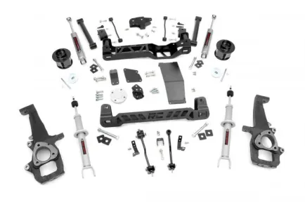 Transform your fourth-generation RAM 1500 with Rough Country's complete 6in Suspension Lift Kit. This all-inclusive system delivers an aggressive, commanding stance that perfectly complements your truck's rugged new design. Preserve Your Smooth Factory Ride: Experience the same comfortable and controlled driving feel you love. Our kit maintains a smooth factory-like ride quality so every journey, on-road or off, is just as comfortable as before. Boost Your Ground Clearance for Ultimate Off-Road Confidence: Gain plenty of added clearance to tackle the toughest trails and obstacles with ease. The 6-inch lift lets you run up to massive 37-inch tires for a bold look and enhanced off-road capability. Achieve a Balanced, Aggressive Stance: Level your RAM's front and rear for a sleek, aggressive profile that turns heads everywhere you go. The kit includes precision-engineered front and rear crossmembers, each laser-cut with the iconic RC logo for a fierce yet streamlined appearance. Optimized Ride Quality with Application-Specific Springs: Enjoy improved handling, ride comfort, and load support thanks to dual-rate rear coil springs (optional upgrade) tailored for your RAM. Whether cruising highways or conquering rocky terrain, this kit adapts seamlessly. Fully Configurable with Premium Shock Options: Customize your ride quality with shock absorbers that match your driving style, from nitrogen-charged N3 shocks for balanced performance to the premium Vertex reservoir shocks for the ultimate ride. Clean Installation with Long-Term Durability: All components are designed with drop brackets and proper geometry to keep your truck looking sharp and functioning flawlessly, no loose parts or unsightly hangers. Backed by Rough Country's Limited Lifetime Replacement Guarantee, this kit is built to last. Upgrade your RAM 1500 with Rough Country's 6in Suspension Lift Kit, dominate the trails, look the part, and drive like a champion every mile of the way.