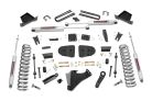 Level Up Your Super Duty Stance: Transform your fifth-generation Ford F-250/F-350 Super Duty with Rough Country's 4.5" Suspension Lift Kit, the perfect solution for eliminating factory rake and gaining a bold, aggressive profile. This front-to-rear leveling kit not only boosts ground clearance but also delivers a clean, commanding look that dominates both street and trail. Engineered for a Smooth, Balanced Ride: Lifted front coil springs deliver additional ride height without compromising comfort or control. Radius arm drop brackets correct caster alignment, preserving your truck's factory handling and ride quality. Meanwhile, sway bar drop brackets and a track bar ensure everything stays at the ideal geometry for a balanced, predictable driving experience. Built to Last, Mile After Mile: This kit includes heavy-duty fabricated rear blocks, engineered to outlast and outperform standard cast blocks. Anti-axle wrap rear blocks help eliminate common lift-related issues while maintaining factory ride quality. Whether loaded down or running empty, this suspension system stays smooth and reliable. Customize Your Performance: Choose the shocks that match your driving style: our rugged N3 series for a versatile balance of highway comfort and off-road capability, or upgrade to V2 Monotube shocks for enhanced performance with lightning-fast response and heat dissipation. The power to personalize your ride is yours. Simple Installation. Serious Results: With a 100% bolt-on design, this lift kit installs easily no cutting, no drilling, and no hassle. Plus, it clears up to a 35" tire with the proper wheel backspacing, giving you the freedom to run the setup you've been dreaming of. Rough Country Has You Covered: Every Rough Country 4.5" Suspension Lift Kit is backed by our Limited Lifetime Replacement Warranty, so you can lift with confidence.