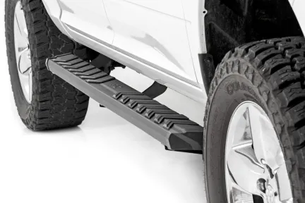 Ease of Access: Step into your vehicle with confidence using Rough Country's BA2 Running Board Side Steps. Designed for both form and function, these heavy-duty steel side steps offer a wide 5-inch stepping area, providing a secure and stable footing. A must-have for lifted applications, these steps enhance your vehicle's accessibility while delivering a rugged, off-road-ready look. Heavy-Duty Construction: Built to last, Rough Country's BA2 Running Board Side Steps feature a durable steel construction with a textured powder-coated finish for superior corrosion resistance. The integrated nonslip stepping surface ensures maximum traction, even in wet or muddy conditions. Engineered to support up to 500 lbs., these steps are as strong as they are stylish. Hassle-Free Installation: Get back on the road quickly with a no-drill, bolt-on installation. Designed for a precision fit, these running boards install easily using standard hand tools in approximately 1-2 hours. No cutting, drilling, or modifications required - just a seamless upgrade for your truck or SUV. Built for Lifted Rides: Whether you're driving a lifted truck or SUV, these side steps provide a sleek, functional upgrade that complements your vehicle's rugged stance. Their aggressive design enhances both style and accessibility, making them the perfect addition for off-road enthusiasts and daily drivers alike.5-Year Limited Warranty: Rough Country backs these BA2 Running Board Side Steps with a 5-year limited warranty, protecting against structural and workmanship defects. Drive with confidence knowing your investment is covered for years to come.