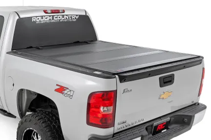Elevate your Chevy/GMC's functionality and appearance with Rough Country's GM Hard Tri-fold Flip-up Bed Cover. Unlike traditional bed covers that limit access to your truck bed, our innovative Flip-up design grants you complete access to your truck bed, making it easier to load and unload large items. Full-Bed Access: With Rough Country's Tri-fold Flip-up Bed Cover, you can conveniently flip up the cover, allowing full-bed access without the hassle of removing the cover. Built to Last: Our bed cover is crafted from lightweight aluminum and boasts a resilient powder coat finish. This coating resists corrosion and wear, ensuring that your truck bed maintains its pristine appearance even in harsh weather conditions. Superior Water Drainage System: The bed rails of this bed cover feature an innovative water drainage system. No need to worry about water pooling on your cover or seeping into your truck bed. Premium Weather Seals: The Tri-fold cover also includes top-of-the-line weather-resistant seals that create a tight and secure barrier along the bed rails. These seals ensure your cargo remains protected from the elements, even in inclement weather. Secure Cargo Storage: Provide added security for your truck bed contents, deterring theft and protecting valuable items. Elevate your Chevy/GMC s truck bed and get full access, unmatched durability, and superior weather protection with Rough Country's Hard Tri-fold Flip-up Bed Cover!