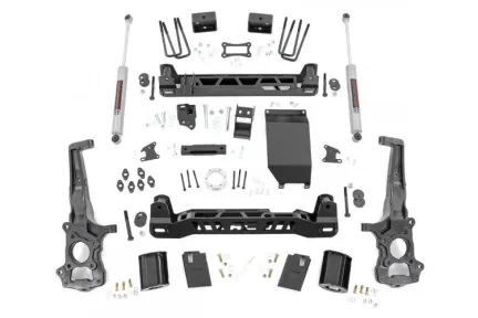 Transform your Ford Ranger from mid-size to masterpiece with Rough Country's 6-inch Lift Kit! This kit includes everything you need for a monster makeover of your rig. A set of beefy front and rear crossmembers keep everything in line, while a durable skid plate offers unbridled protection against off-road obstacles. A set of lifted, one-piece cast knuckles and rear, fabricated lift blocks offer plenty of ride height to run larger tires and wheels! This kit also features Rough Country's Nitrogen-charged N3 shocks. These 10-stage variable valving, high-pressure Nitrogen charged shocks offer a fantastic blend of off-road action and smooth highway ride quality. Rough Country's Ford Ranger kit is engineered to preserve the smooth, factory like ride while upgrading your vehicle's performance and off-road potential. Set your Ranger apart from the pack with this total transformation for your truck! Includes a Lifetime Replacement Guarantee.