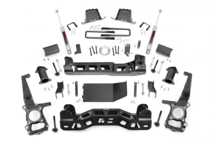 Commanding Lift, Premium Ride: Transform the look and capability of your 2011-2013 Ford F-150 with Rough Country's 6-Inch Lift Kit. Engineered to deliver a bold, leveled stance, this kit not only increases ground clearance for rugged off-road performance but also makes room for larger tires and wheels. Whether you're cruising the highway or tackling backcountry trails, enjoy a smooth, confident ride with enhanced control and presence. Engineered for Strength and Stability: Built for serious performance, this kit features heavy-duty lifted knuckles, durable strut spacers, or your choice of lifted struts, all designed to maintain proper suspension geometry. Differential and sway-bar drop brackets, along with brake line extensions and a driveshaft spacer, ensure everything stays at factory-like angles. Massive 1/4-inch thick front and rear crossmembers offer uncompromised strength, laser-cut with the RC logo for a clean, aggressive look. Advanced Rear Block Design: Rough Country's 4-inch fabricated rear blocks are stronger and longer-lasting than traditional cast versions. Specially engineered anti-axle wrap blocks eliminate common lift-related issues while maintaining stock ride comfort. You get durability and drivability in one rugged package. Tailored Ride Performance: This kit includes Rough Country's premium N3 shocks-10-stage variable valving, nitrogen-charged for the perfect fusion of off-road performance and on-road comfort. Want more? It's fully configurable with Rough Country's full lineup of shocks and struts, including the high-performance Vertex reservoir upgrade. Limited Lifetime Replacement Warranty. Rough Country's 6" Lift Kit is backed with a limited lifetime replacement warranty for manufacturer defects. As such, the product is protected from structural and workmanship damage after the date of purchase. With our industry-leading warranty, give yourself peace of mind when using Rough Country's Suspension products!