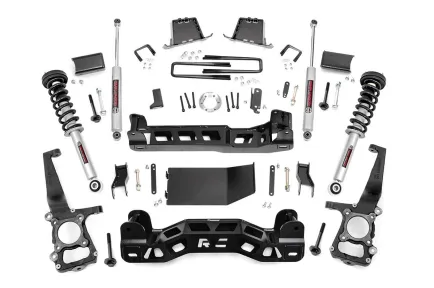 Commanding Lift, Premium Ride: Transform the look and capability of your 2011-2013 Ford F-150 with Rough Country's 6-Inch Lift Kit. Engineered to deliver a bold, leveled stance, this kit not only increases ground clearance for rugged off-road performance but also makes room for larger tires and wheels. Whether you're cruising the highway or tackling backcountry trails, enjoy a smooth, confident ride with enhanced control and presence. Engineered for Strength and Stability: Built for serious performance, this kit features heavy-duty lifted knuckles, durable strut spacers, or your choice of lifted struts, all designed to maintain proper suspension geometry. Differential and sway-bar drop brackets, along with brake line extensions and a driveshaft spacer, ensure everything stays at factory-like angles. Massive 1/4-inch thick front and rear crossmembers offer uncompromised strength, laser-cut with the RC logo for a clean, aggressive look. Advanced Rear Block Design: Rough Country's 4-inch fabricated rear blocks are stronger and longer-lasting than traditional cast versions. Specially engineered anti-axle wrap blocks eliminate common lift-related issues while maintaining stock ride comfort. You get durability and drivability in one rugged package. Tailored Ride Performance: This kit includes Rough Country's premium N3 shocks-10-stage variable valving, nitrogen-charged for the perfect fusion of off-road performance and on-road comfort. Want more? It's fully configurable with Rough Country's full lineup of shocks and struts, including the high-performance Vertex reservoir upgrade. Limited Lifetime Replacement Warranty. Rough Country's 6" Lift Kit is backed with a limited lifetime replacement warranty for manufacturer defects. As such, the product is protected from structural and workmanship damage after the date of purchase. With our industry-leading warranty, give yourself peace of mind when using Rough Country's Suspension products!