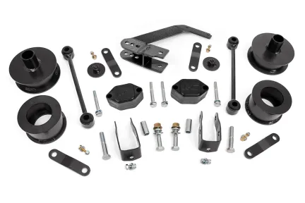 Stand Taller, Drive Bolder: Transform your Jeep's stance with Rough Country's 2.5-inch Series II Suspension Lift Kit. This aggressive upgrade delivers the clearance you need to conquer off-road challenges while turning heads on the street. Accommodating up to 35-inch tires, this kit gives your Jeep the muscular look and enhanced capability every trail demands. Level Up with Confidence: With 2.5-inch front and 2-inch rear coil spacers, your Jeep achieves a balanced, level profile that enhances both aesthetics and performance. The included rear track bar bracket corrects rear axle geometry, keeping your suspension aligned and your ride stable on any terrain. Engineered for Durability: Designed with a spring retention system, this kit ensures your coil springs remain secure during extreme articulation, no shifting, no surprises. Select from Rough Country's premium shock options, including nitrogen-charged N3, V2, or M1 Monotube shocks, for customizable ride quality tailored to your off-road style. Install with Ease: Featuring a 100% bolt-on installation, this lift kit requires no cutting, welding, or complicated modifications. Whether you're outfitting your Jeep in the driveway or the garage, you'll be ready to hit the trails in no time with Rough Country's 2.5-inch Series II Lift Kit.
