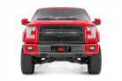 Give the front-end of your Ford F-150 a unique look with Rough Country's Mesh Grille kit! This easy to install grille replacement kit swaps out your stock grille with the eye-catching, head-turning good looks of this aftermarket upgrade. With a unique, laser-cut mesh pattern surrounded by stylish, stainless steel rivets, this grill gives your truck a more menacing look that s sure to draw attention. This kit features a Rough Country's 30" Curved Dual-Row Black-Series LED light bar with Cree LED's outputting a staggering 14,400 Lumens and 180 Watts of lighting power. Includes a mountable on/off switch, wiring harness, and our 3 Year LED Warranty! This easy-to-install grille requires no cutting or drilling and can be returned to stock at any time. Each kit is powdercoated black to resist corrosion and give a long lifespan of good looks. This kit also allows you to retain your active grille shutter system and front camera and features Rough Country's Lifetime Replacement Warranty!