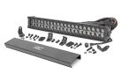 Command the Dark: Light up the night and stay on the trails longer with Rough Country's sleek 20-inch Dual Row CREE LED Light Bar. This powerful light bar offers 18,000 lumens of illumination and 200 watts of energy-efficient output, all housed in a stylish, modern frame. Featuring 40 high-intensity 5-watt CREE LEDs, it delivers superior brightness and durability for any adventure. The sleek black panel design complements vehicles with black accents, such as grilles, wheels, bull bars, or steps. Designed for all-weather performance, this light bar comes with a durable die-cast aluminum housing, ensuring maximum strength and heat dissipation. It s also backed by an IP67 waterproof rating, providing reliable performance even in harsh conditions. This light bar contains 20 amber daytime running LEDs for enhanced visibility and safety. Installation is made simple with the included premium, flat-wound wiring harness, complete with an on/off switch for easy operation. The light bar also features Rough Country's Light Bar Noise Silencers, designed to eliminate unwanted hums, whistles, and wind noise typically found in mounted LED light bars. This light bar includes both end mounts and adjustable base mounts, offering multiple mounting options for maximum versatility. A snap-on cover protects the lens, while Moisture Breather technology reduces moisture build-up inside the light. Plus, it s all backed by a 3-year warranty for peace of mind.