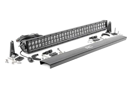 Command the Dark: Light up the night and stay on the trails longer with Rough Country's 30-inch Dual Row CREE LED Light Bar. This powerful light bar offers 14,400 lumens of illumination and 180 watts of energy-efficient output, all housed in a stylish, modern frame. Featuring 60 high-intensity 3-watt CREE LEDs, it delivers superior brightness and durability for any adventure. The sleek black panel design complements vehicles with black accents, such as grilles, wheels, bull bars, or steps. Designed for all-weather performance, this light bar comes with a durable die-cast aluminum housing, ensuring maximum strength and heat dissipation. It s also backed by an IP67 waterproof rating, providing reliable performance even in harsh conditions. Installation is made simple with the included premium, flat-wound wiring harness, complete with an on/off switch for easy operation. The light bar also features Rough Country's Light Bar Noise Silencers, designed to eliminate unwanted hums, whistles, and wind noise typically found in mounted LED light bars. This light bar includes both end mounts and adjustable base mounts, offering multiple mounting options for maximum versatility. A snap-on cover protects the lens, while Moisture Breather technology reduces moisture build-up inside the light. Plus, it s all backed by a 3-year warranty for peace of mind.