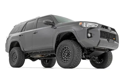 Superior Lift Solution. Looking to add some serious attitude to your Toyota 4Runner? Rough Country's 4.5-Inch Lift Kit is just what you need. This lift kit gives your 4Runner a meaner, lifted, and level stance while providing a smooth ride for unmatched highway and trail performance. It also adds room for larger wheels and tires, so you can make your truck stand out from the crowd. With excellent ride quality and handling characteristics on the road, this lift kit is the perfect way to take your Toyota to the next level. High-Quality Construction. Rough Country's 4.5-Inch Lift Kit for the 2015-2020 Toyota 4Runner makes it easy to gain that much-needed ground clearance and run up to a 33" tire for that aggressive look you want! Designed to provide excellent ride quality width and factory alignment specs, this kit boasts premium components, giving you a higher quality lift on your 4Runner. The high-quality components and innovative design provide the strength, stability, and up-travel you need to conquer almost any terrain. Installation and Warranty. Our 4.5-Inch Lift Kit is his all-inclusive kit is a total transformation for your SUV, with durable lifted knuckles, protective skid plate, and all the brackets and hardware needed to set your SUV to a factory-like geometry while providing additional ground clearance. When you purchase a Rough Country product, you get more than a great product at an affordable price. You also get peace of mind knowing that your purchase comes with a limited lifetime replacement warranty for manufacturer defects. With Rough Country's industry-leading warranty, you can be sure that your Rough Country lift kit is protected from structural and workmanship damage after the date of purchase.