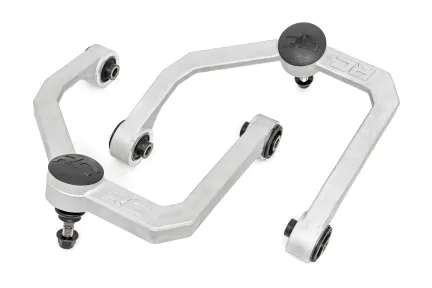 Durable One-Piece Design. Take your truck to the next level with Rough Country's most durable Upper Control Arm to date! Rough Country's Forged Upper Control Arms feature a solid, 1-piece design made of forged aluminum for superior strength and durability. This forged design outperforms all other types of arm construction, with no welding weak spots that could bend or break. High Strength Ball Joints. Rough Country's Forged Upper Control Arms use POM ball joints which reduces metal-to-metal contact for less maintenance and longer service life versus standard or OE replacements. These Ball joints feature a POM ball race for an extremely low co-efficient of friction and an oversize ball diameter reduces load and improves range of motion in a fully greaseable design. Rough Country's Forged Upper Control Arms also feature durable rubber bushings rubber bushings for superior quality and durability. Installation. Featuring a 100% bolt-on installation process, an estimated timeframe of 3-4 hours is recommended to complete this full installation. This full kit can be installed at home and can be completed efficiently and quickly! Limited Lifetime Replacement Warranty. Rough Country's Forged Aluminum Control Arms are backed with a limited lifetime replacement warranty towards manufacturer defects. As such, the product is protected from structural and workmanship damage after the date of purchase. With our industry-leading warranty give yourself peace of mind when using Rough Country's Suspension products!