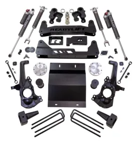 - 6" Lift Kit GM HD Trucks- Heavy-duty fabricated steel components utilizing 3/16? and 1/4? steel plate- Full-coverage differential skid plate constructed from 3/16? steel plate- Laser cut, CNC formed heavy-duty front/rear drop crossmembers.- 37x12.50 with a 20×9” with a 0 offset wheel- Vehicle-specific performance-tuned Falcon 2.1 monotube dampers on all four corners.- Improved dynamic roll control and low-speed damping.- Dramatic improvement in on-road comfort and off-road performance.- Optimized fitment for unobstructed suspension travel and articulation.- 6061-T6 aluminum alloy shock body resists Impact to protect internal components.- Smooth-honed internal shock body surface for long-term performance.- 3/4” induction hardened chrome plated shaft resists rock damage, corrosion, and shaft buckling.- Large shaft diameter provides a wide range of adjustments on adjustable shocks.- Hard anodized 6061-T6 aluminum alloy billet piston.- 1-piece Teflon bronze piston wear band w/ O-ring.NOTE:  Some GM HD trucks equipped with Tow Package may require custom-length U-bolts purchased separately. Custom U-bolt length may vary by vehicle application.  If the ReadyLIFT kit's standard U-bolts are too short, ReadyLIFT recommends locally sourcing custom U-bolts built to each truck's specifications.