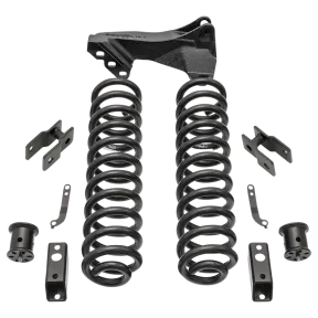 ReadyLIFT Suspension offers a 2.5" Lift Coil Spring Front Leveling Kit engineered exclusively to fit 2020-2023 Ford Super Duty F250/F350/F450 4WD diesel trucks. The 46-20252 is designed for those who wish to retain the factory shock performance which also includes our track bar relocation bracket. A front coil spring leveling kit is a superior alternative for lifting the front of your truck. The coil spring system allows for increased tire sizes and widths along with providing improved ground clearance and a more commanding view of the road. The coil spring leveling kit delivers a great ride and handling performance and allows for 35" tall tires! This combination is more than just a leveling kit. This is a performance and ride-enhancing kit. ReadyLIFT is confident you will be amazed at how well it rides and performs both on and off-road. The ReadyLIFT 2.5" Coil Spring Front leveling kit system for 2020-2023 Ford Super Duty F250/F350/F450 trucks also included model-specific brake line extension brackets, our time-tested bump stop extension brackets, and new front sway bar frame mount extension brackets to keep the factory sway bar where is supposed to be. If you want a rugged, leveled stance and a smooth but controlled ride, then you want the new Coil Spring Leveling Kit System. Your truck will thank you! NOTE: Tremor editions will not net full height.