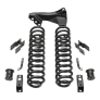 ReadyLIFT Suspension now offers a 2.5" Lift Coil Spring Front leveling Kit including our popular front track bar relocation bracket made to fit 2011-2019 Ford Super Duty F250/F350/F450 4WD diesel trucks. This gives Super Duty owners an excellent alternative for lifting the front of your truck while providing the flexibility of selecting your own aftermarket front shocks.. This great new front leveling system will raise the front of your 2011-2019 4WD Super Duty truck 2.5" while including added value components such as the our track bar relocation bracket.. The 46-2728 coil spring system allows for increased tire sizes and widths along with providing improved ground clearance and a more commanding view of the road. This premiere leveling kit easily allows for 35" tall tires. The 46-2728 coil spring leveling kit delivers a great ride ride and handling performance! The key ingredients to improving your ride are the new specially engineered coil springs teamed with a track bar relocation bracket! This combination is more than just a leveling kit. This is a performance and ride enhancing kit that will really surprise you at how well it rides and performs both on and off road. The ReadyLIFT 2.5" Coil Spring Front leveling kit system for 2011-2019 Ford Super Duty F250/F350/F450 trucks also included model-specific brake line extension brackets, Our time-tested bump stop extension brackets and new front sway bar frame mount extension brackets to keep the factory sway bar where is supposed to be. If you want tough looks and a smooth but controlled ride, then you want the new 46-2728 Coil Spring Leveling Kit System. Your truck will thank you! NOTE: Super Duty trucks, depending on factory spring rate, may experience a minor variation in lift height. Final lift height may vary from 1.5" to 2.5". NOTE: 2011-2016 F250 vehicles may require a rear block kit to achieve a level stance. NOTE: Not recommended for TREMOR editions.